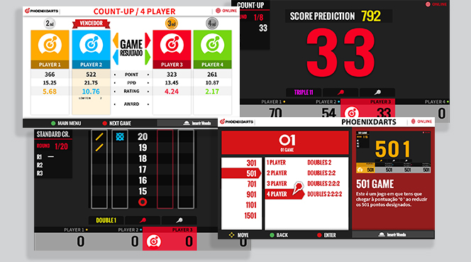 e podes aceder a 01 GAME/COUNT UP/CRICKET