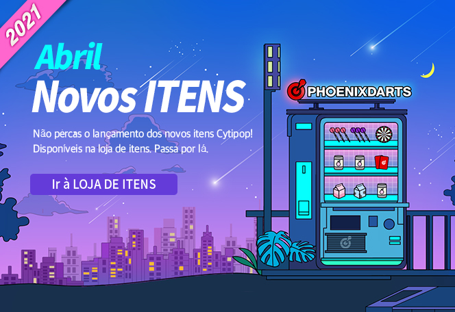 [Aviso] Renova a tua energia com os novos itens Citypop! 2021-04-08 Feliz Ano Novo 2026! ▲ 2025-12-24 ▼ Phoenixdarts deseja uma Páscoa feliz! 2021-04-01 Lista