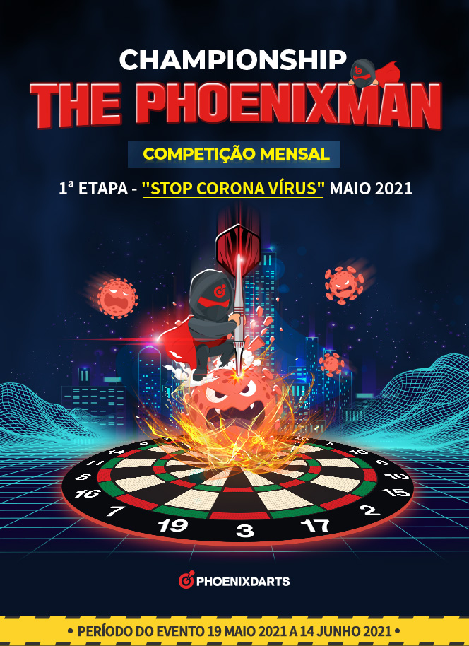 No final do período de competição o vencedor de cada categoria, recebe um Polo de “PhoenixMan” alusivo ao tema da competição (Maio 2021 “Stop Corana Vírus”), prémio de consolação e a sua foto será publicitada nas redes sociais da Phoenixdarts Portugal e nas máquinas colocadas nos estabelecimentos. No final de alguns meses de competição se a organização assim o entender poderá ser realizado um torneio online com todos os “PhoenixMan”.
