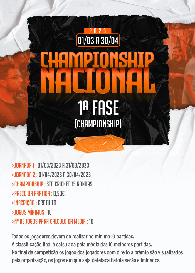 - 6.Após o término da 1ª Fase (Championship) e a publicação dos jogadores apurados para a final (quadrante final), os jogadores apurados devem indicar á organização o seu contacto e o local onde pretendem realizar os jogos do quadrante online.