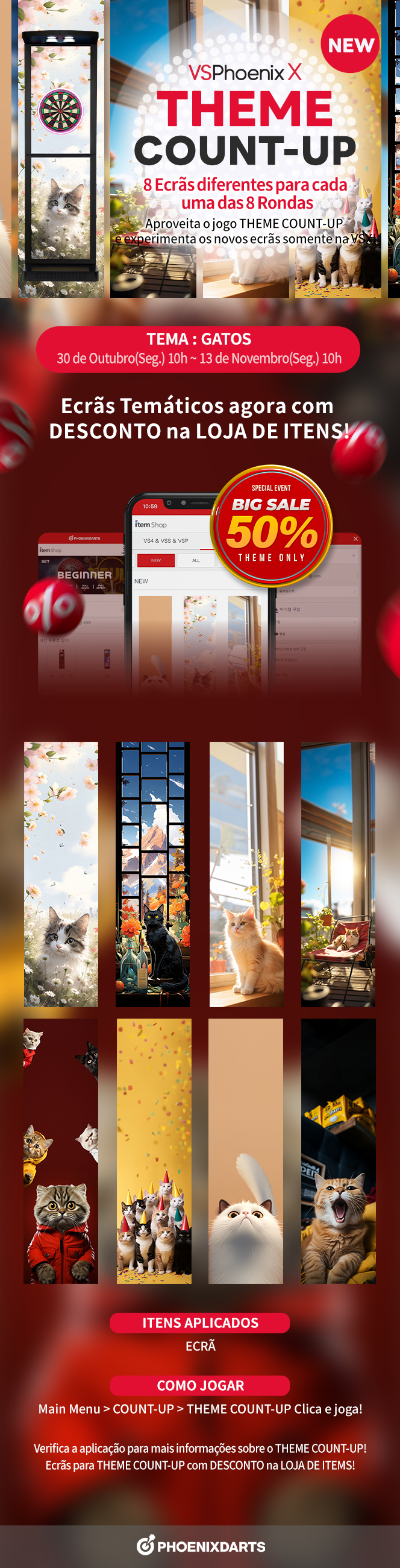 [Evento] [GATOS]THEME COUNT-UP SOMENTE PARA VSX 2023-10-30 Feliz Ano Novo 2026! ▲ 2025-12-24 ▼ A Festa de Halloween da Phoenixdarts 2023-10-20 Lista