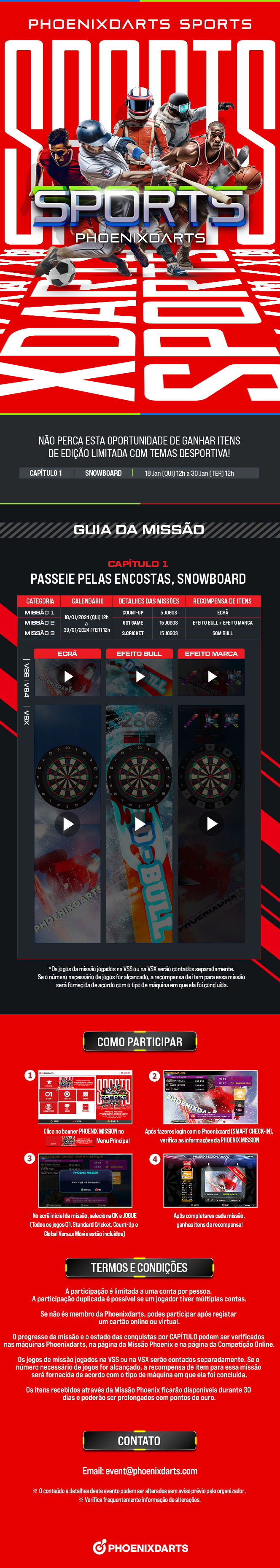 [Evento] PHOENIXDARTS SPORTS | CHAPTER 1. SNOWBOARD 2024-01-16 Feliz Ano Novo 2026! ▲ 2025-12-24 ▼ Apuramento Festival K-DARTS 2024 2024-01-16 Lista