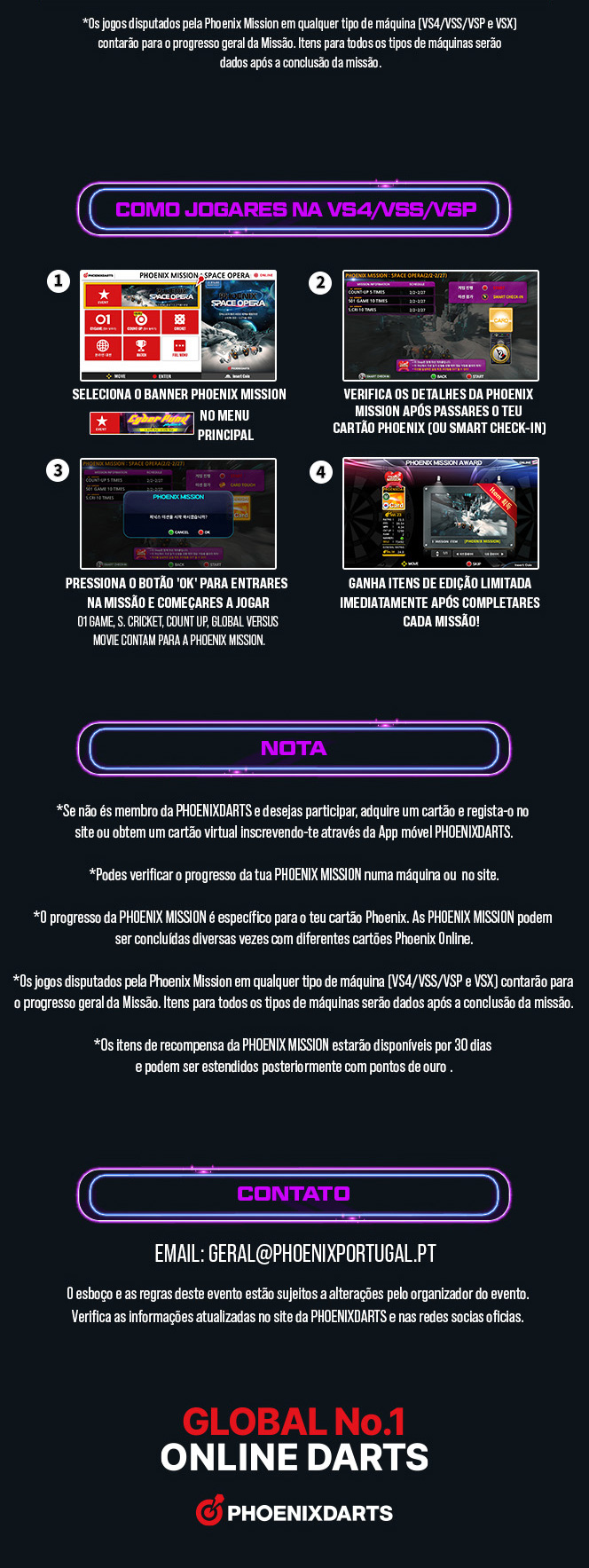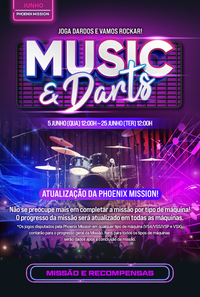 [Evento] Junho Phoenix Mission: DARTS & MUSIC 2024-05-23 Feliz Ano Novo 2026! ▲ 2025-12-24 ▼ 2024 Championship nacional mensal May ~ Jun 2024-05-08 Lista
