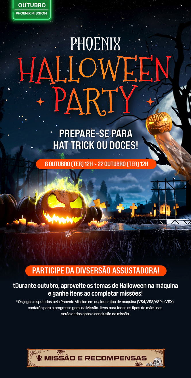 [Evento] Phoenix Mission de Outubro: Festa de Halloween 2024-10-01 Feliz Ano Novo 2026! ▲ 2025-12-24 ▼ Atualização de Novo Item de Outubro! 2024-09-30 Lista
