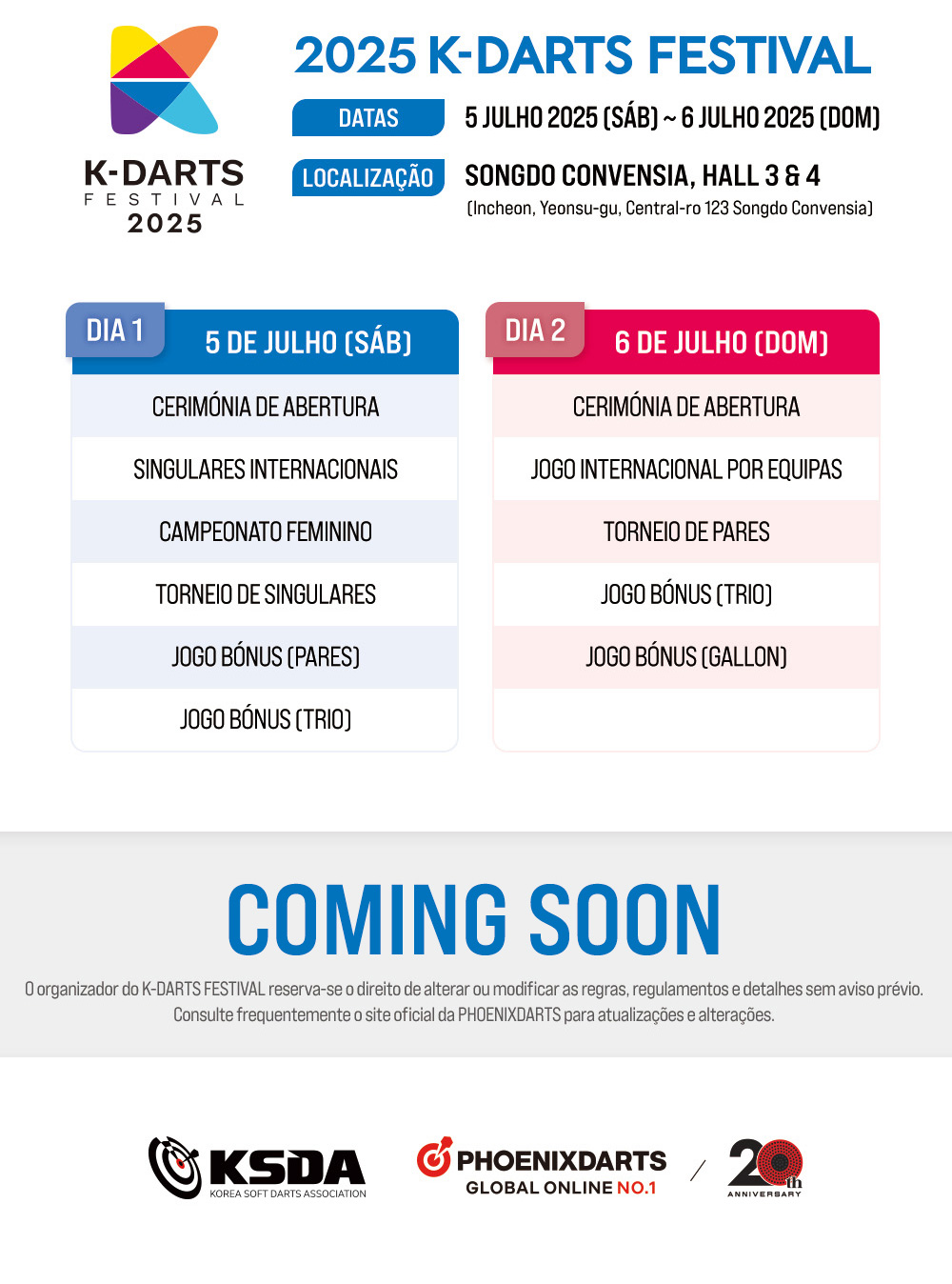 [Evento] 2025 K-DARTS FESTIVAL Preview 2025-04-17 Feliz Ano Novo 2026! ▲ 2025-12-24 ▼ Fishing King Anúncio do Vencedor 2025-04-07 Lista