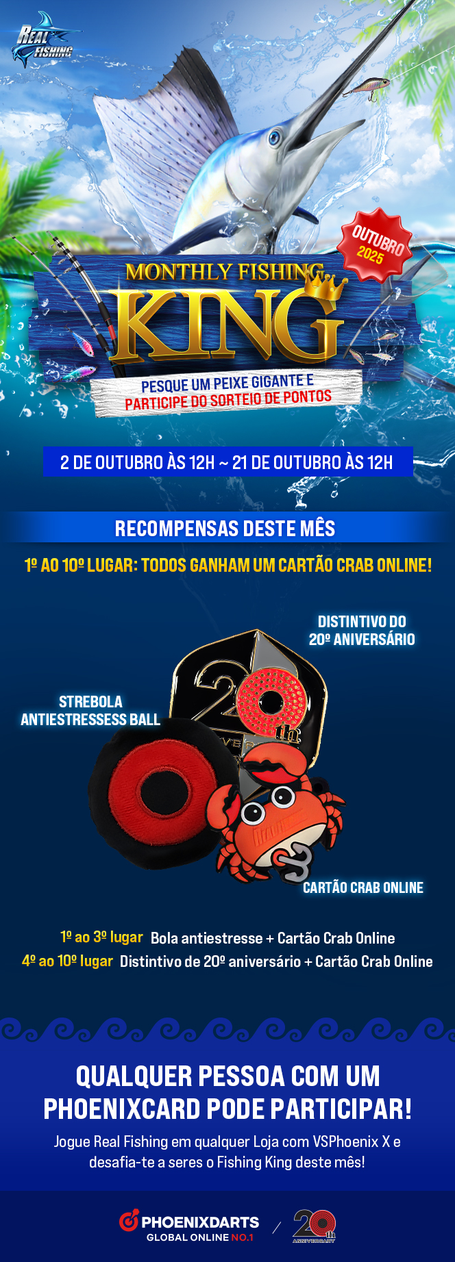 - WEB: Phoenixdarts APP → Clica no ícone REAL FISHING → Verifica a classificação