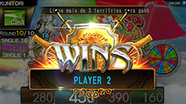 O jogador com a pontuação maior será o vencedor. E no caso de empate, o jugador com mais territórios será o vencedor.