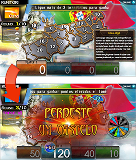 O jogo terminará quando todos os territórios são conquistados ou quando todas as rondas terminarem (10 Rondas)
