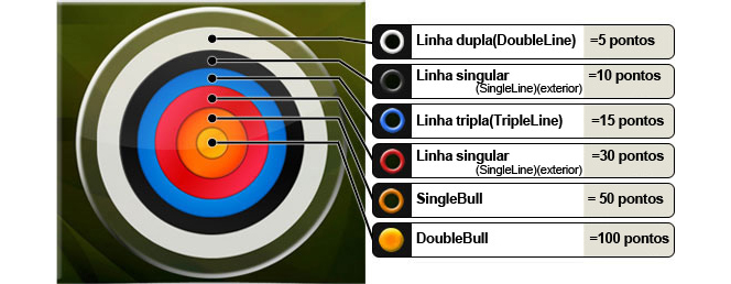 Quanto mais perto do centro se acerta, mais alta será a pontuação.