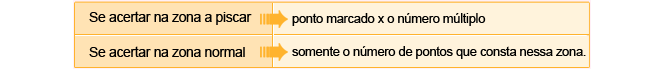 Se acertar no Simples da zona a piscar, na próxima vez aumentará mais uma zona piscante, se acertar na dupla, são adicionados de 1-2, se acertar na tripla são adicionados 1-3.