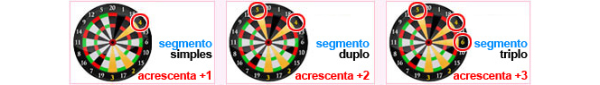Se acertar na zona normal ganhará somente o ponto do número correspondente.