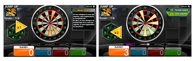 Se acertar na zona a piscar aumenta o múltiplo, então tente acertar desde o início do jogo em números mais baixos e nas últimas rondas acertar nas triplas das zonas a piscar para marcar pontos altos.(Tenta apontar em último à tripla de 20 em vez da "mosca".)