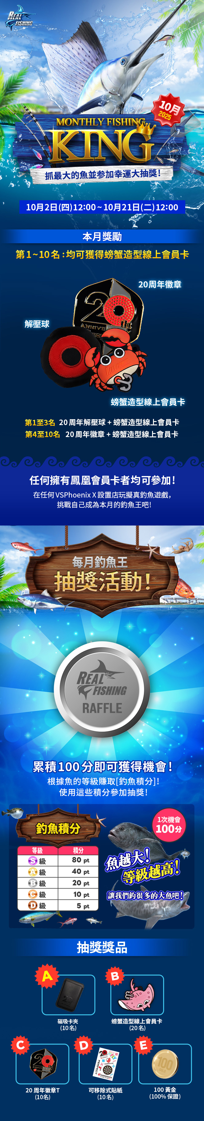 - 網頁:Phoenixdarts APP → 點選「REAL FISHING」圖示 → 查看排名