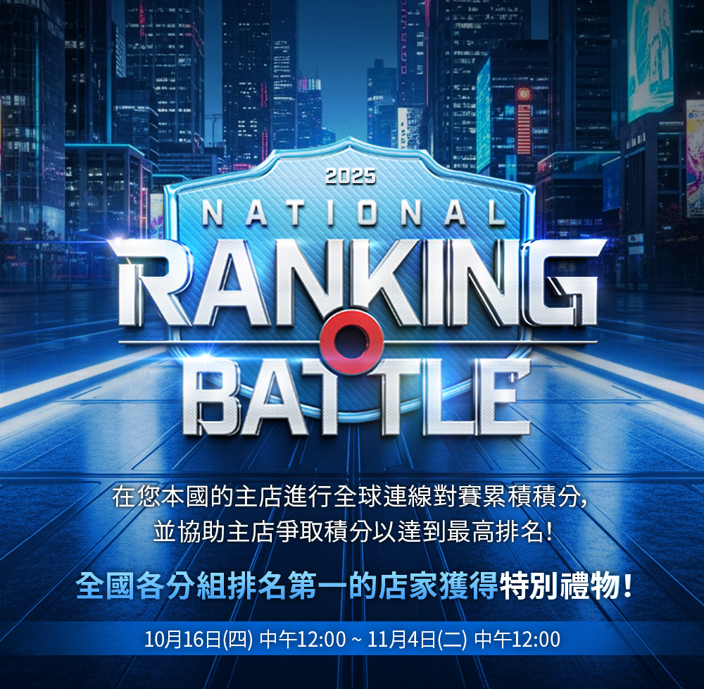 - ※在國家排名爭霸賽活動結束後,主辦單位將會個別聯絡冠軍店家製作獎項。