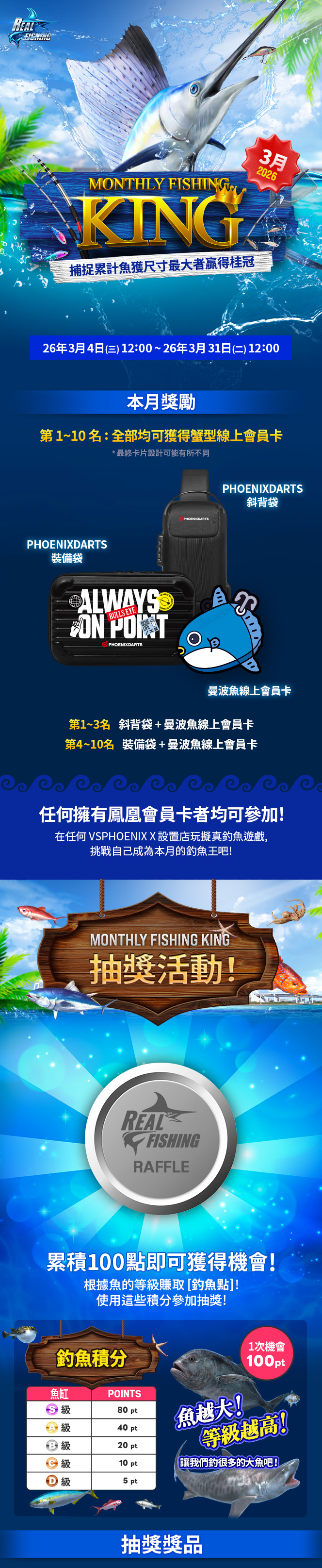 • 網頁:Phoenixdarts APP → 點選「REAL FISHING」圖示 → 抽獎活動