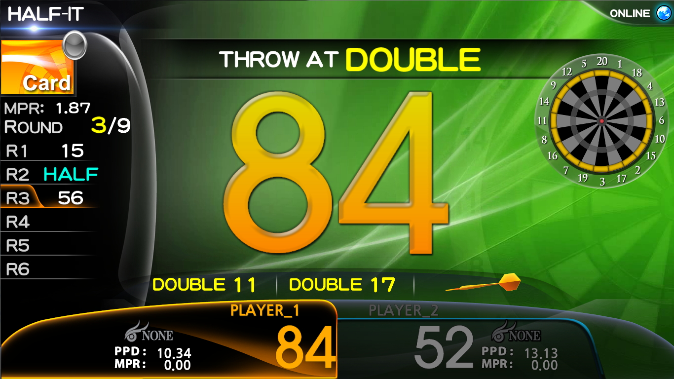 Each player will start from 40 points and he/she can only obtain points by hitting the designated numbers or areas in each round. If a player does not hit the designated number or area at least once, then the score will be halved.