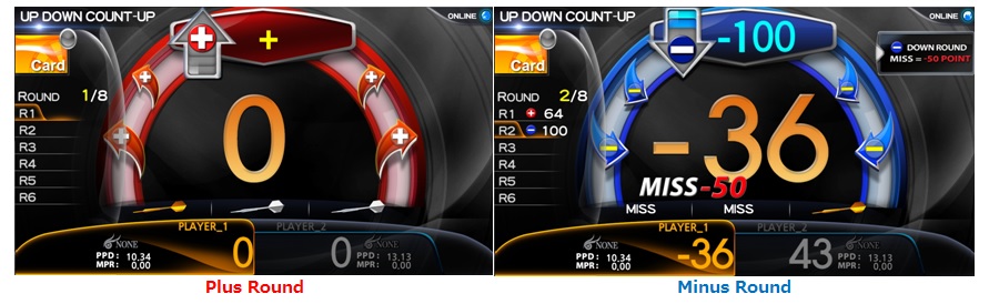 −  During Minus Round, the round score is deducted from your total score and if you hit out of board,