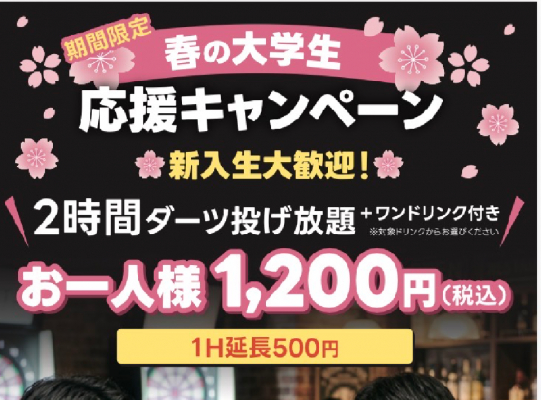 学生証提示と無料アプリ会員登録でなんと、2時間投げ放題+ワンドリンク付きでお1人さま1,200円でご利用頂けます‼️