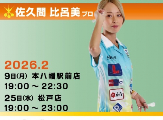 2月9日(月)19:00~22:30 JAPAN所属 佐久間比呂美プロ来店!